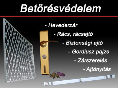 | Cégünk fő profiljába tartozik a mechanikus, és elektromos, vagyonvédelmi eszközök tervezése, gyártása és telepítése, ezen felül: ajtónyitás, zárnyitás, zármentés, zárszerelés, ajtómentés, biztonsági ajtó, páncélajtó, rács, rácsajtó, ablakrács, rácsablak, ajtórács, lakatosmunka, kapu, kerítés, korlát, zárszerkezet, cilinderbetét, ajtóbehúzó és veret, mechanikus és elektromos zára, hevederzára, forgalmazása szerelése, valamint betörés utáni helyreállítás. Internetes web áruház.
